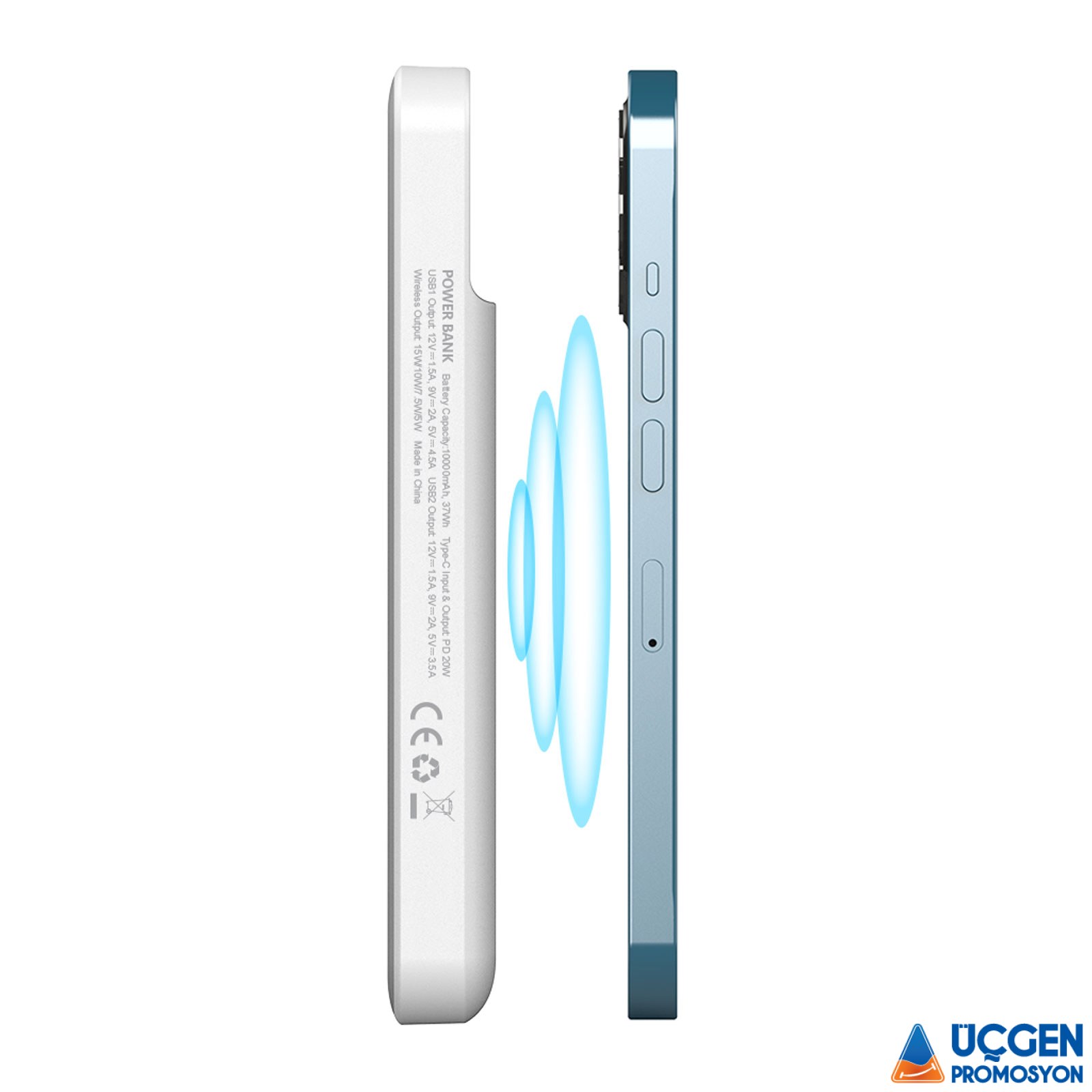 ÜZÜMLÜ 10.000 MAH BEYAZ WIRELESS POWERBANK